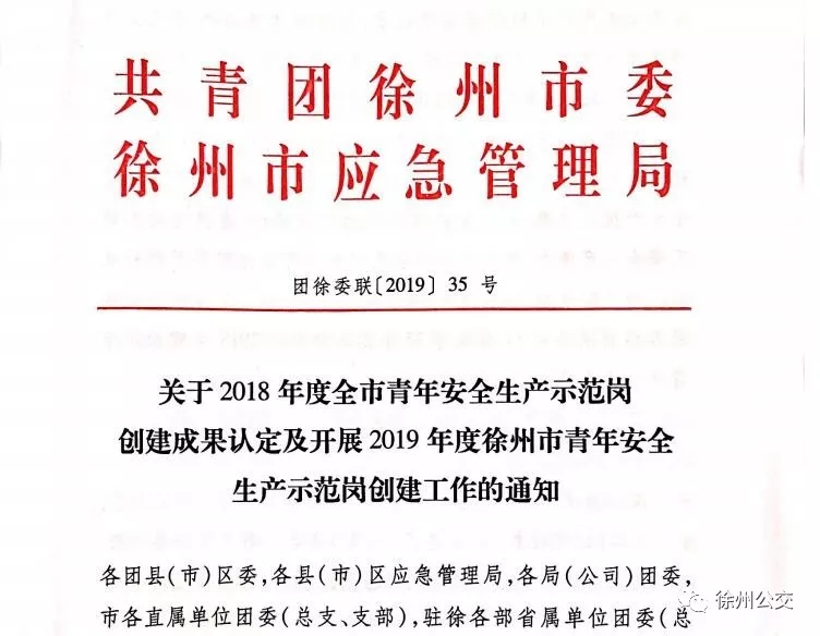 公司81路線榮獲徐州市 “青年安全生產(chǎn)示范崗”榮譽(yù)稱號(hào)