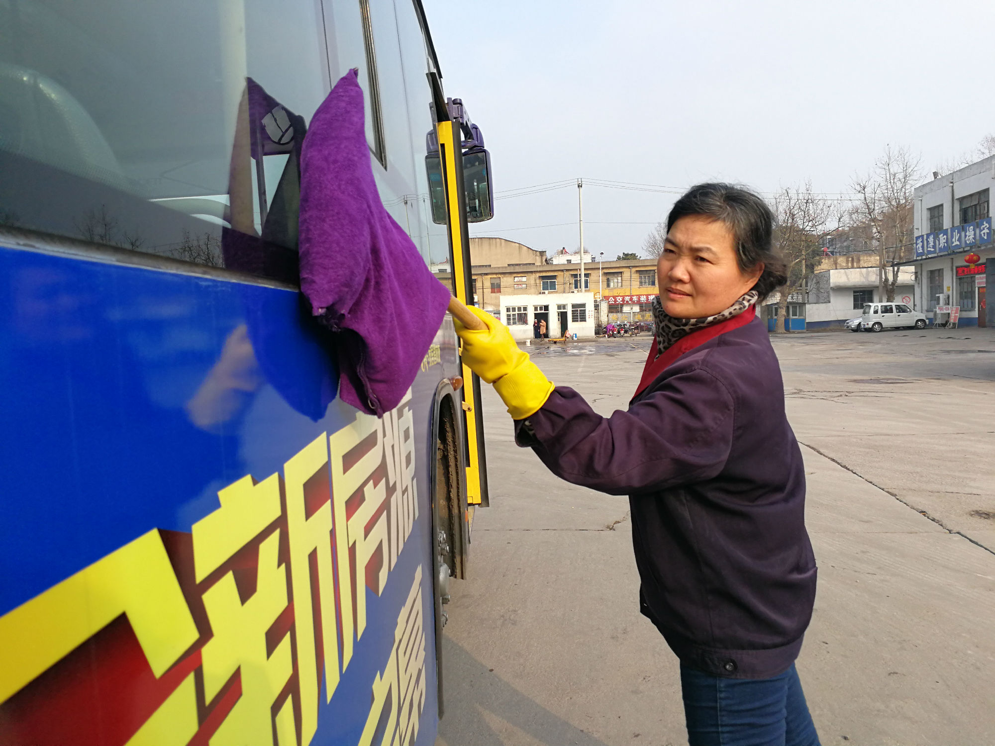 清晨5點(diǎn),74路保潔員韓黎明已經(jīng)來到韓山車場(chǎng),開始保潔車輛。由于氣溫較低,車場(chǎng)內(nèi)的水龍頭凍壞了,無法正常使用,她只好到遠(yuǎn)一點(diǎn)的地方,將水一桶桶的運(yùn)來,開始細(xì)心地擦拭玻璃,車輛外圍,車內(nèi)座椅、內(nèi)圍板....不放過一處角落。冬天的水冰涼刺骨,清洗抹布的手凍得通紅,搓搓手、跺跺腳,她又賣力的干了起來。車窗玻璃上厚厚的霜十分難擦,加上道路上經(jīng)常遇到灑水車,跑完一圈回來車身又臟了,增加了車輛保潔難度。韓黎明不怕辛苦,任勞任怨,只要有臟的地方,她就再次清潔,確保出場(chǎng)的每輛車都干干凈凈。期間,她的衣服多次被汗水浸透,晾晾汗,又凍得發(fā)抖,韓黎明沒有抱怨,仍然堅(jiān)守完成自己的工作。