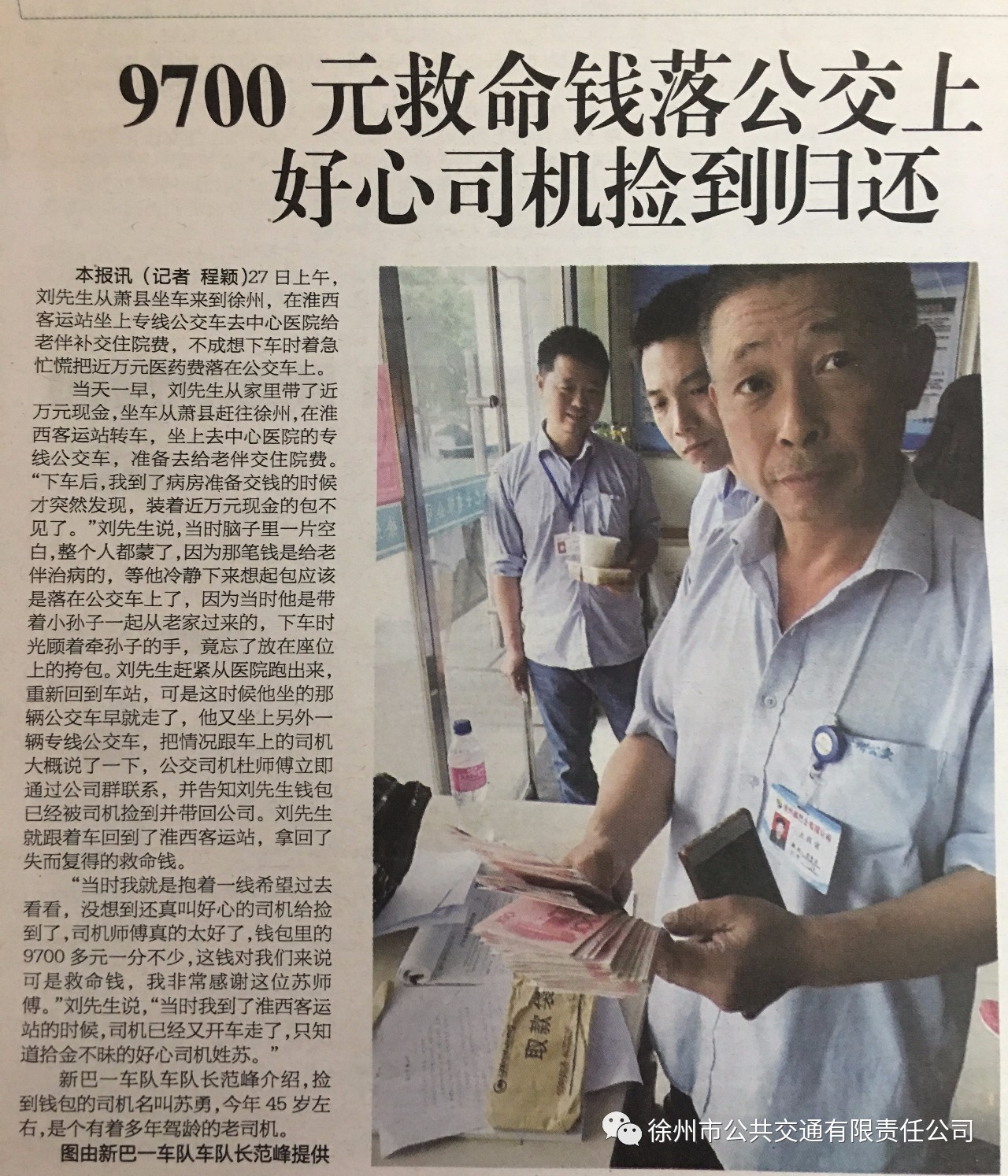 9700元救命錢落公交車上,好心司機(jī)撿到歸還