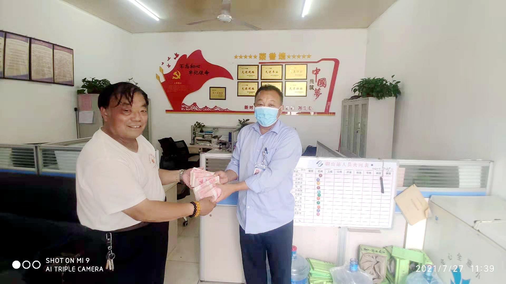 7月27日11時許,83路線駕駛員彭光明駕駛著8235號車回到銅山汽車站,在車廂內清掃消毒時,發(fā)現(xiàn)一個乘客遺失的紅色布包,打開布包發(fā)現(xiàn)里面全是打捆的現(xiàn)金,共計6萬元。彭師傅當即將布包交到車站值班室。