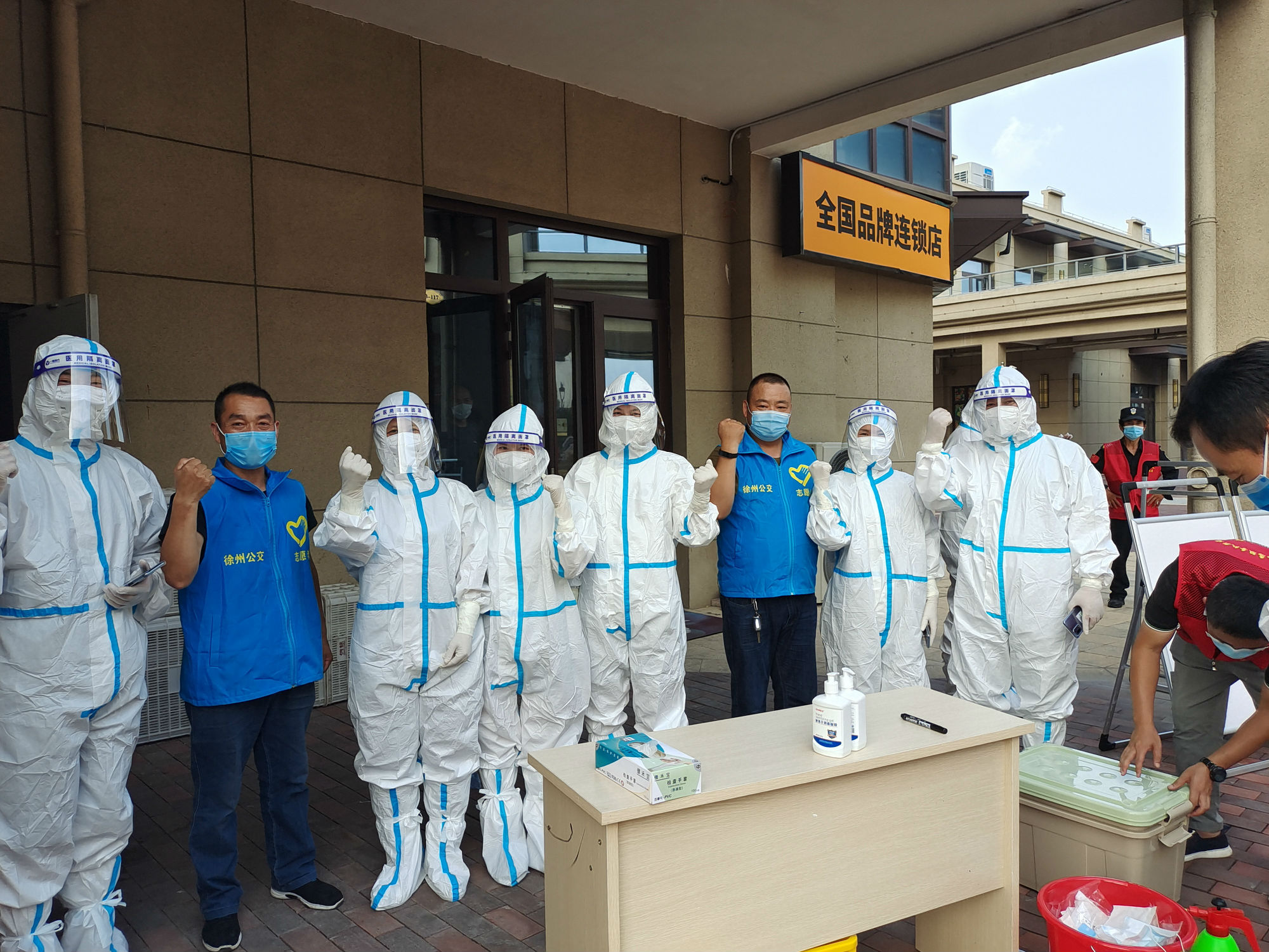 所有人員默契配合,當(dāng)天檢測人員達(dá)九百余人,在高溫天氣下身穿防護(hù)服的隊(duì)員們后背已然被汗水浸濕,體驗(yàn)到了醫(yī)護(hù)人員的艱辛。