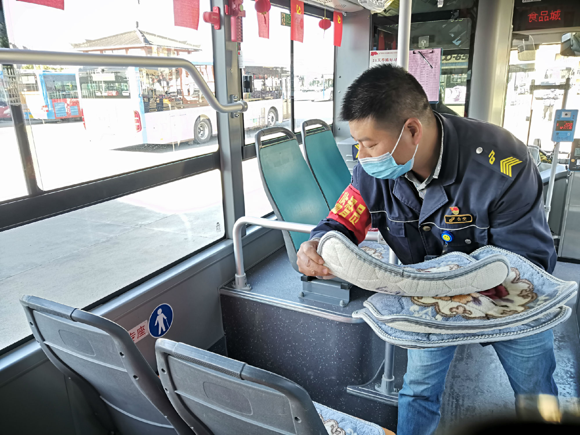 這件事對劉艷軍觸動很深,于是便萌生了買坐墊的念頭。于是,他購買了33個棉坐墊,鋪在了座椅上。