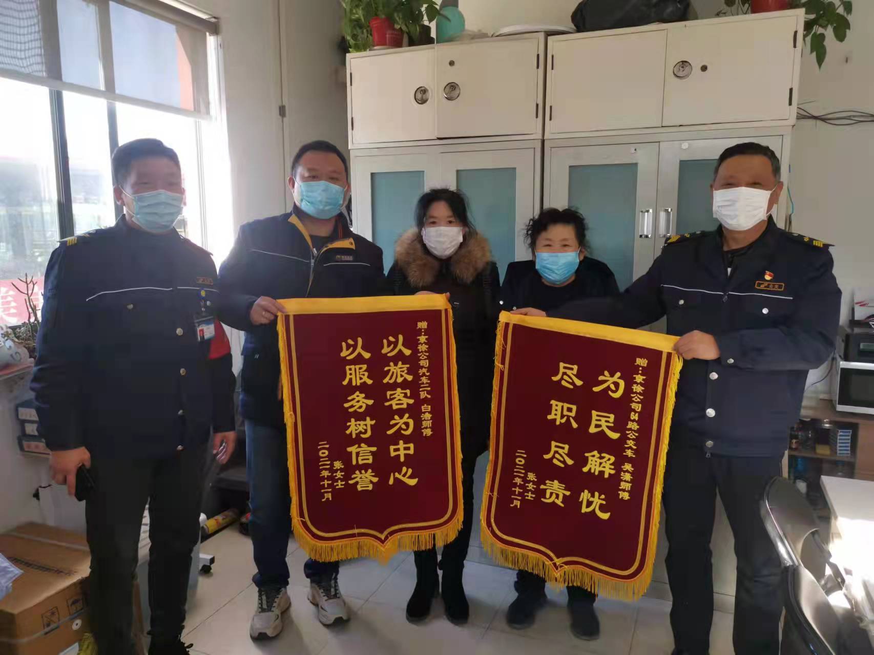 11月11日上午,乘客張女士帶著兩面錦旗來(lái)到食品城車隊(duì),感謝64路駕駛員吳瀟和現(xiàn)場(chǎng)調(diào)度白浩。