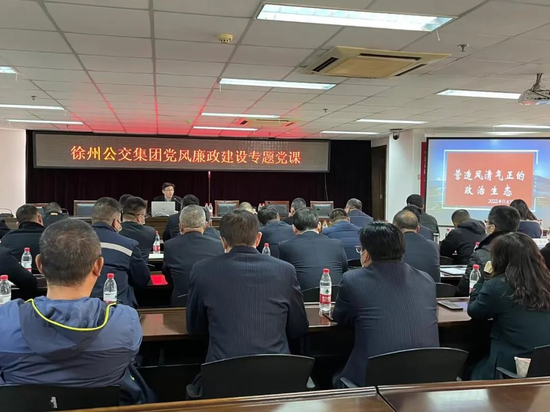 為深入學(xué)習(xí)貫徹落實(shí)黨的二十大精神,堅(jiān)定不移推進(jìn)全面從嚴(yán)治黨向縱深發(fā)展,營(yíng)造集團(tuán)風(fēng)清氣正的政治生態(tài),11月17日,徐州公交集團(tuán)開(kāi)展黨風(fēng)廉政建設(shè)專題黨課。公交集團(tuán)黨委副書(shū)記、總經(jīng)理袁夫松主持會(huì)議,集團(tuán)機(jī)關(guān)部室、基層單位負(fù)責(zé)人等50余人參加學(xué)習(xí)。